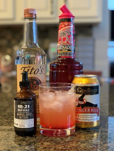 Add ingredients to a highball glass with ice. Top with ginger ale